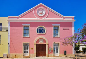 O edifício escolhido para albergar as novas instalações foi um edifício do início do século que inicialmente estava destinado a ser o Teatro Municipal. Este teatro foi implantado sobre o antigo Cemitério, tendo sido feita a transladação dos corpos para o novo Cemitério em 1882. A população de Lagoa não viu com bons olhos a construção do Teatro no local do antigo Cemitério. Assim, ao longo dos anos o edifício teve várias utilizações: canil, armazém de materiais vários, garagem de veículo de transporte do matadouro Municipal, ginásio, entre outros usos.